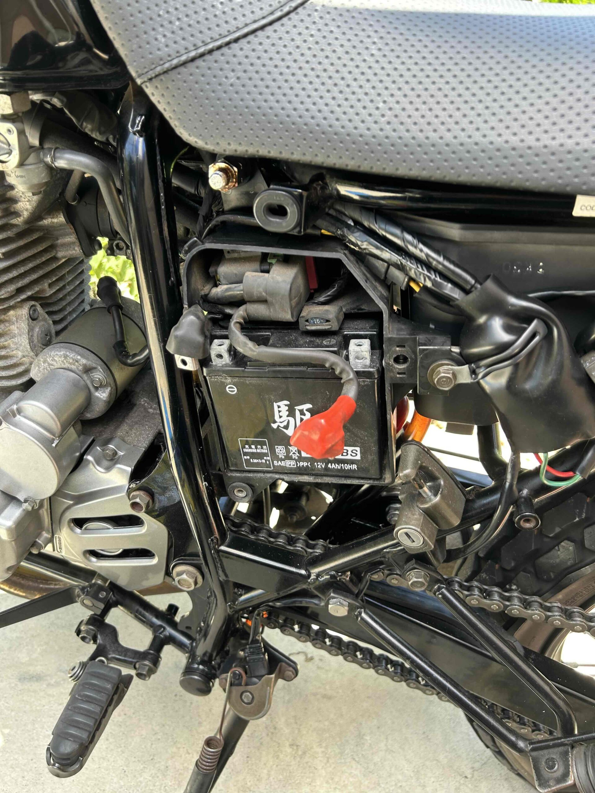 工具を使って端子を外し、新しいバッテリーをしっかりセット。緊張しながらセルを押すと…キュルル、ブォン!しっかりエンジンがかかってくれて、心の中でガッツポーズしました。