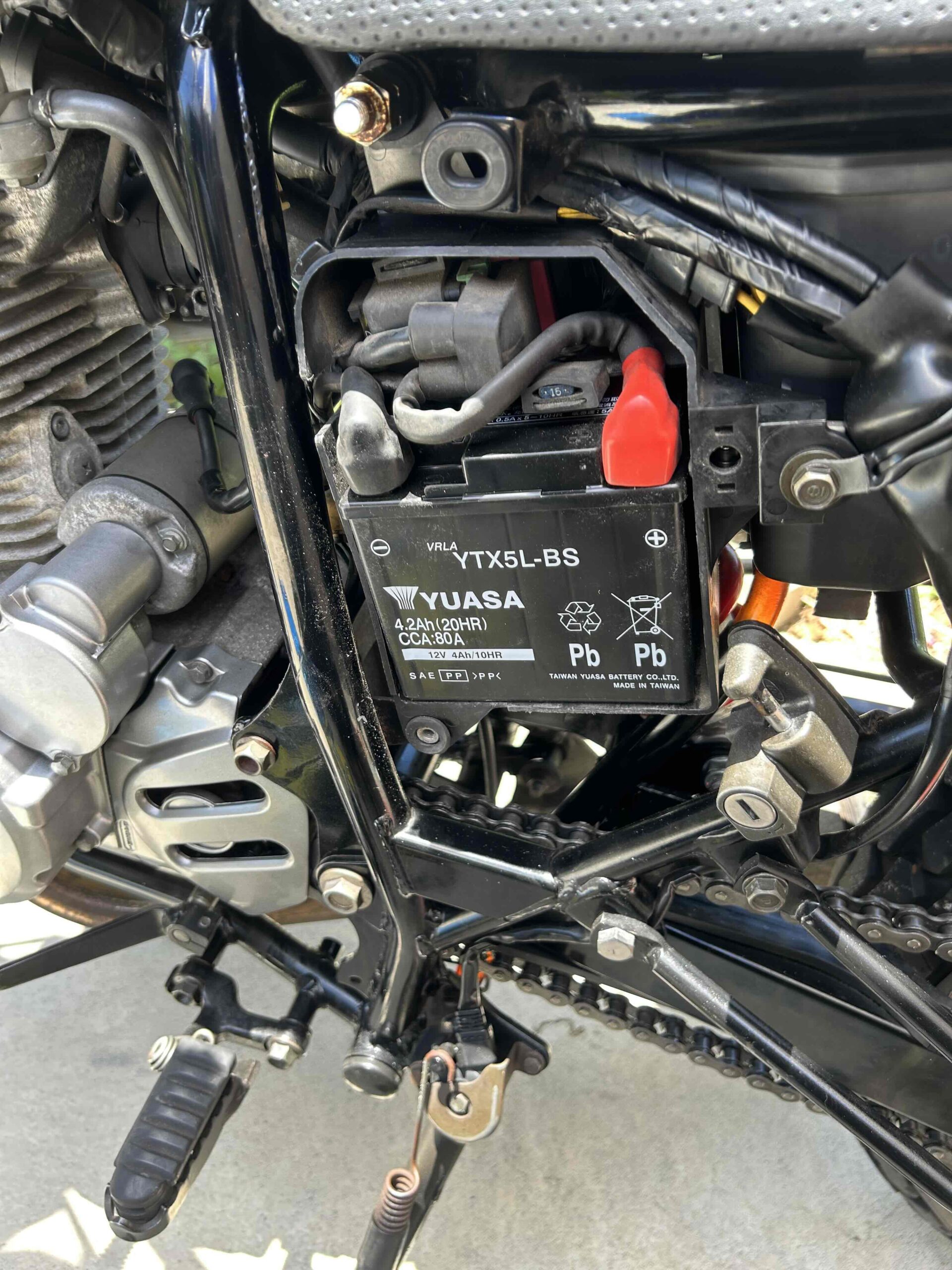 FTR223に適合するバッテリーをいろいろと調べてみたところ、「TAIWAN YUASA 台湾ユアサ シールド型 バイク用バッテリー YTX5L-BS」という製品がピッタリのようでした。口コミも良く、信頼できそうなメーカーだったので、すぐにネットで注文。
